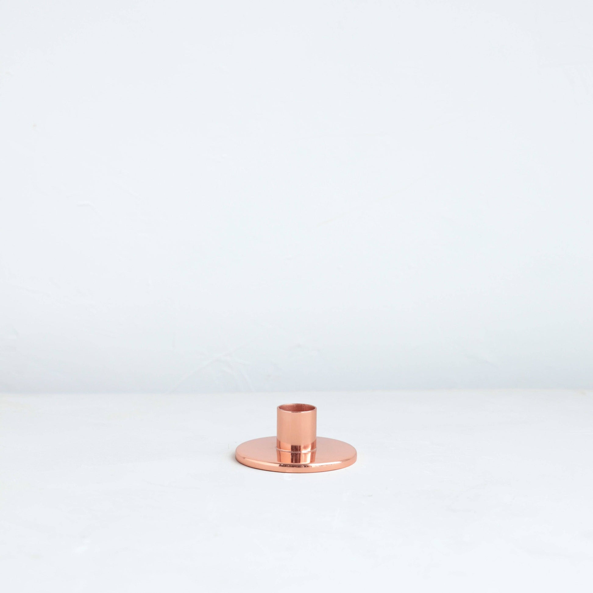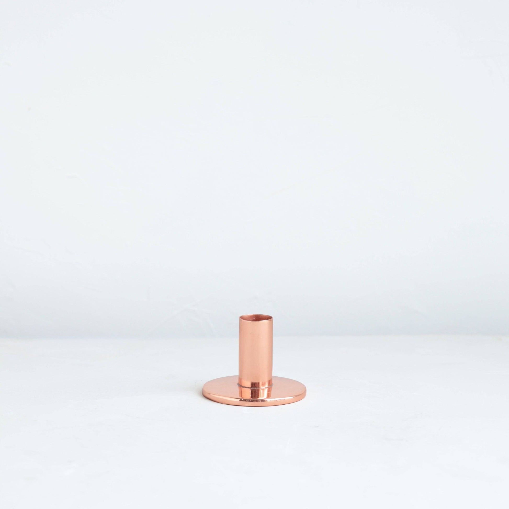 The perfect companion to our taper candle collection, our copper taper holders are a sleek, modern way to add a lustrous accent to any space. Each copper plated holder is sized to fit a standard taper candle.